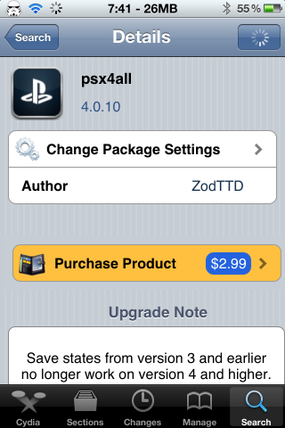 1] Go to Cydia Store and search for PSX4all, it is a paid software, so, purchase, download and install it on your iDevice. You can also get this software from the following repo: