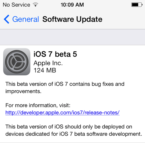 Well today Apple has just seeded the fifth beta of iOS 7 to developers and it is currently available for download on Apple’s dev center or you can download it via OTA from your iPhone by going to Settings—-> General—Software Update..
