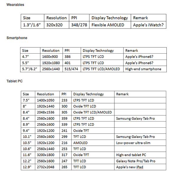 On the third level, the iPad is also expected to be larger and 12.9 inch has been the standard speculation. iPad may indicate a strong move from Apple, since the smartphone giant is looking to develop a larger and higher performance tablet to set a gold standard in the market. The 12.9 inch iPad would have a 2732 x 2048 panel.