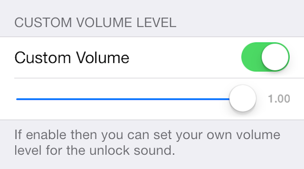 Just after you install the tweak on your device, go to the tweak’s settings menu where you will see a kill switch, custom unlock sound option, and custom volume level toggle and slider.