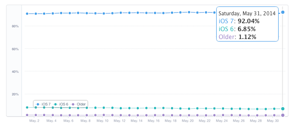 The statics shows that 89.7% of iPhones and 84.8% of iPads are running the latest software version. Those numbers are based on the millions of devices that accessed the Chitika ad network between May 22 and May 28 in the United States and Canada.