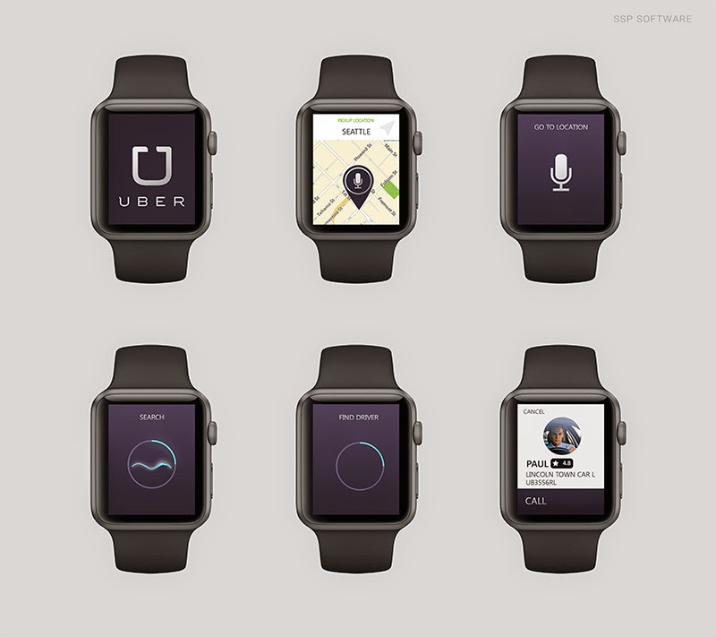 The mockup shows how you can request a Uber using the Apple Watch.