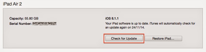STEP 5: Hold the Alt/Option key on the Mac or Shift Key in Windows on your keyboard and click on the Check for Update option, instead of restoring. We were able to successfully downgrade from iOS 8.1.1 to iOS 8.1 using this step, but if you want to go by the book then you should use the Restore method, but it will be more time consuming. Important note: If you use the Restore method, then it will wipe the data from your device so please don’t forget to take a backup.