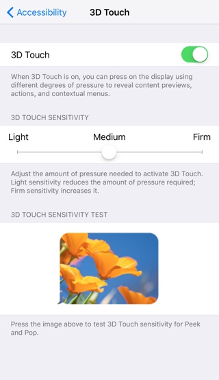 • Once inside the 3D Touch section you can switch 3D Touch ON or OFF.