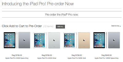 The retailer, however, is only taking pre-orders for the Wi-Fi variants of the iPad Pro with 32GB and 128GB of storage space, with the LTE variant missing from the pre-order list. Other accessories that are also available for pre-order include the Smart Keyboard, Apple Pencil, and official Silicone cases from Apple.